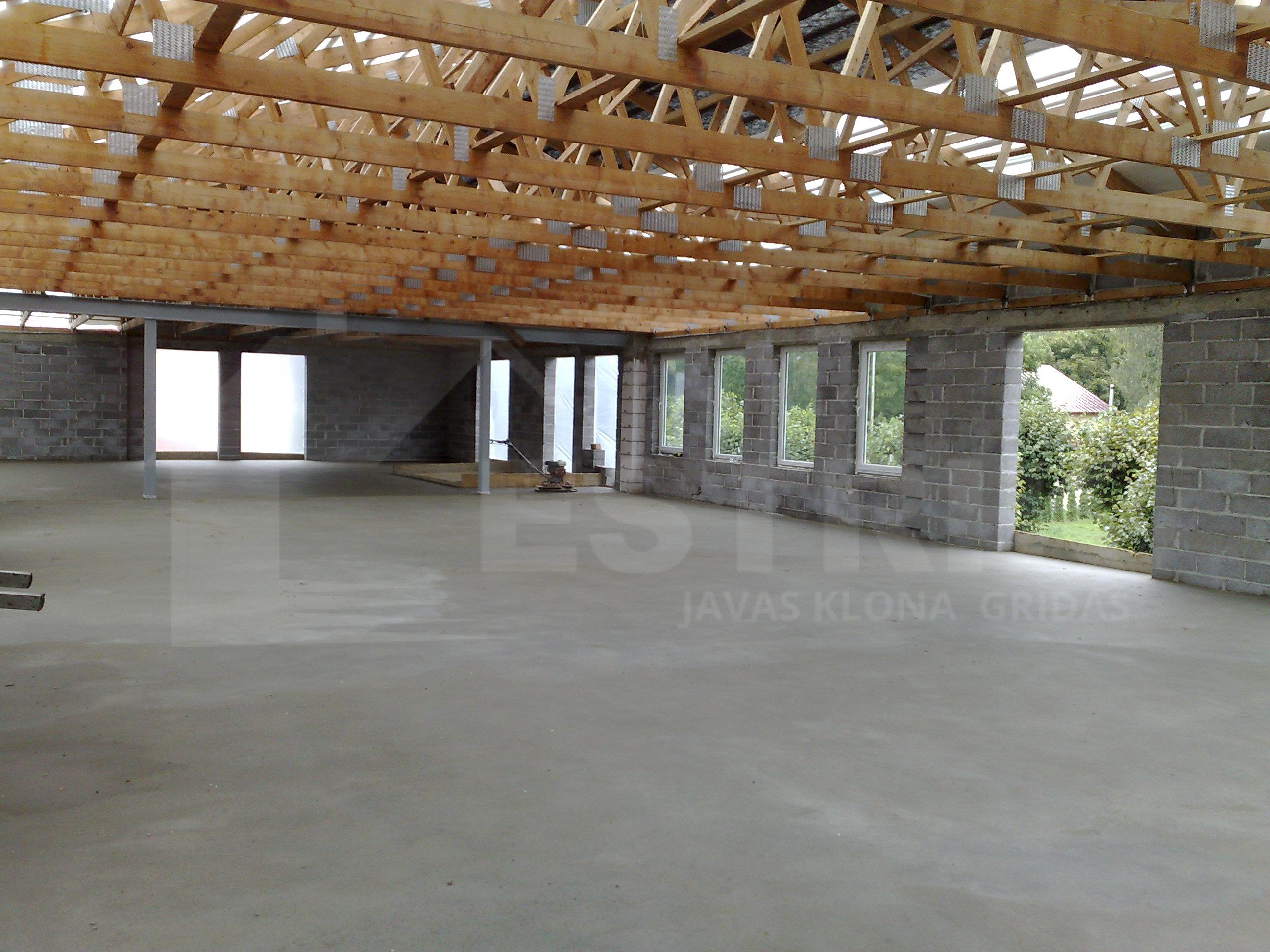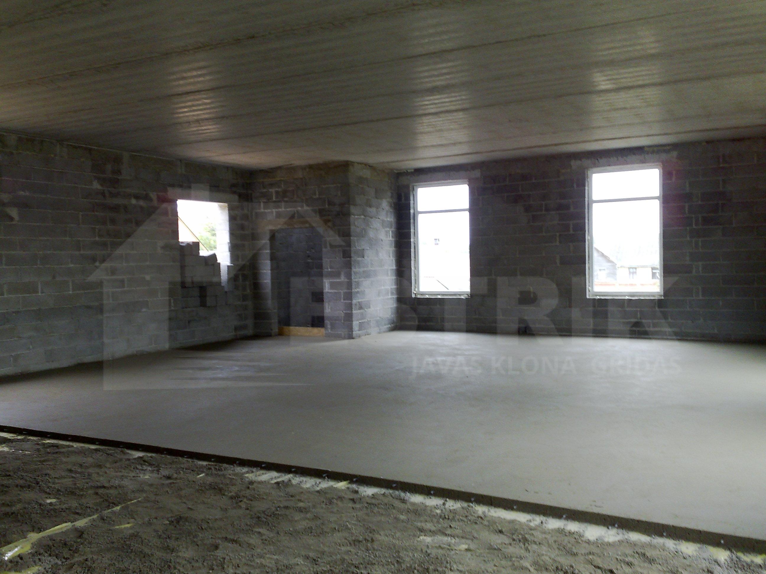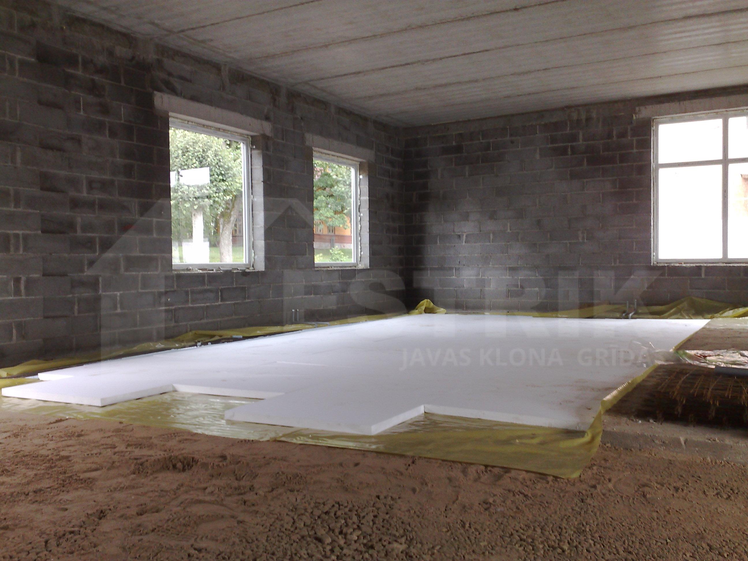Siltumizolācijas materiāla (putulolistirola plākšņu), tvaika izolācijas materiāla PE plēves un armatūras sieta ieklāšana, grīdu betonēšana – armēta javas klona grīda (estrich grīda) – tirdzniecības telpām.