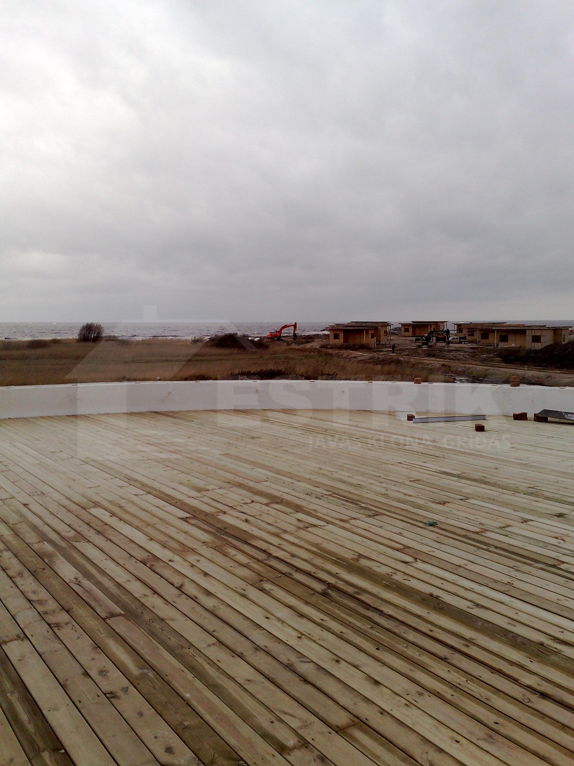 Siltumizolācijas materiāla (putulolistirola plākšņu), tvaika izolācijas materiāla PE plēves un armatūras sieta ieklāšana, grīdu betonēšana – armēta javas klona grīda (estrich grīda) – viesnīcas telpām.