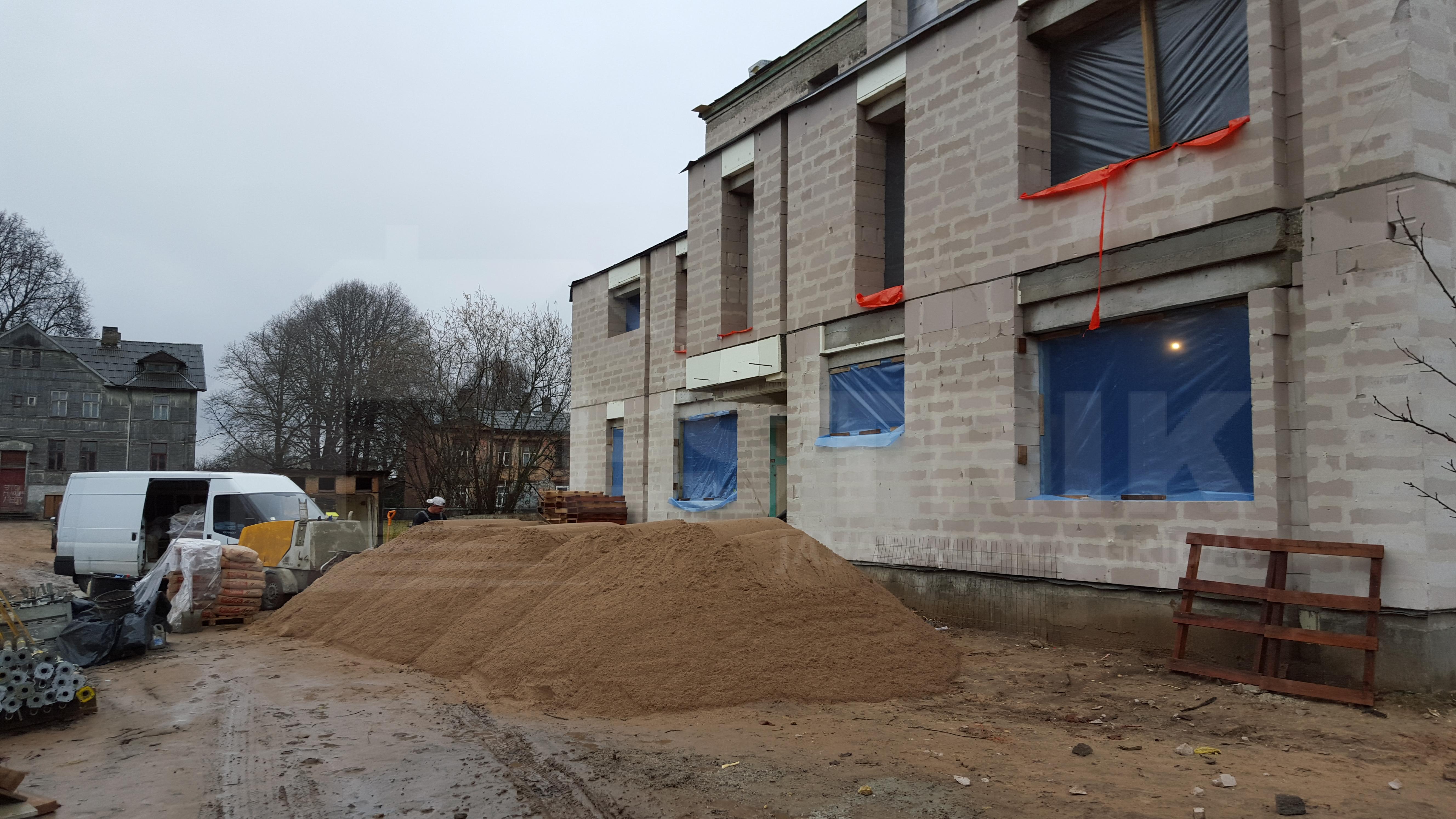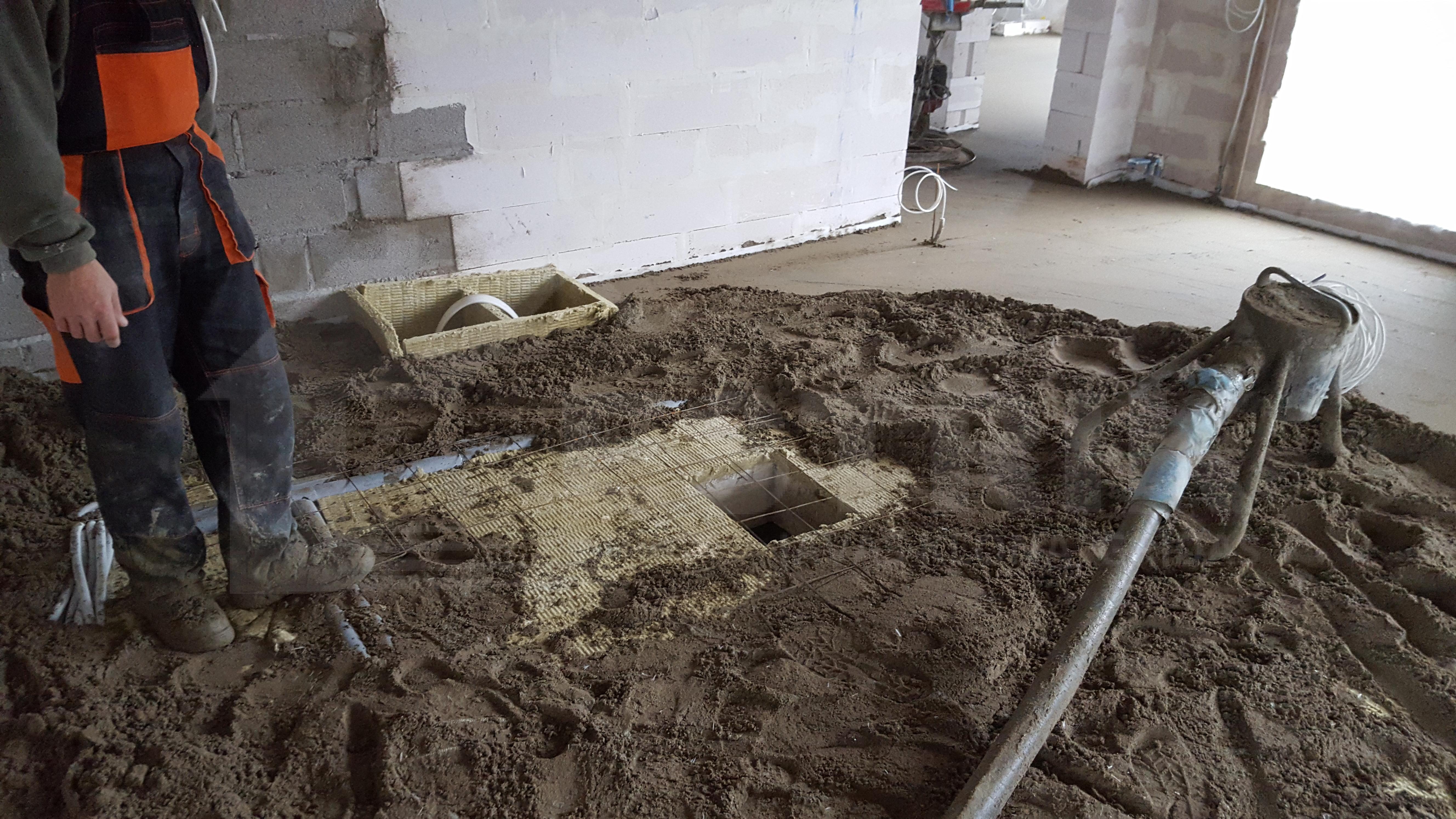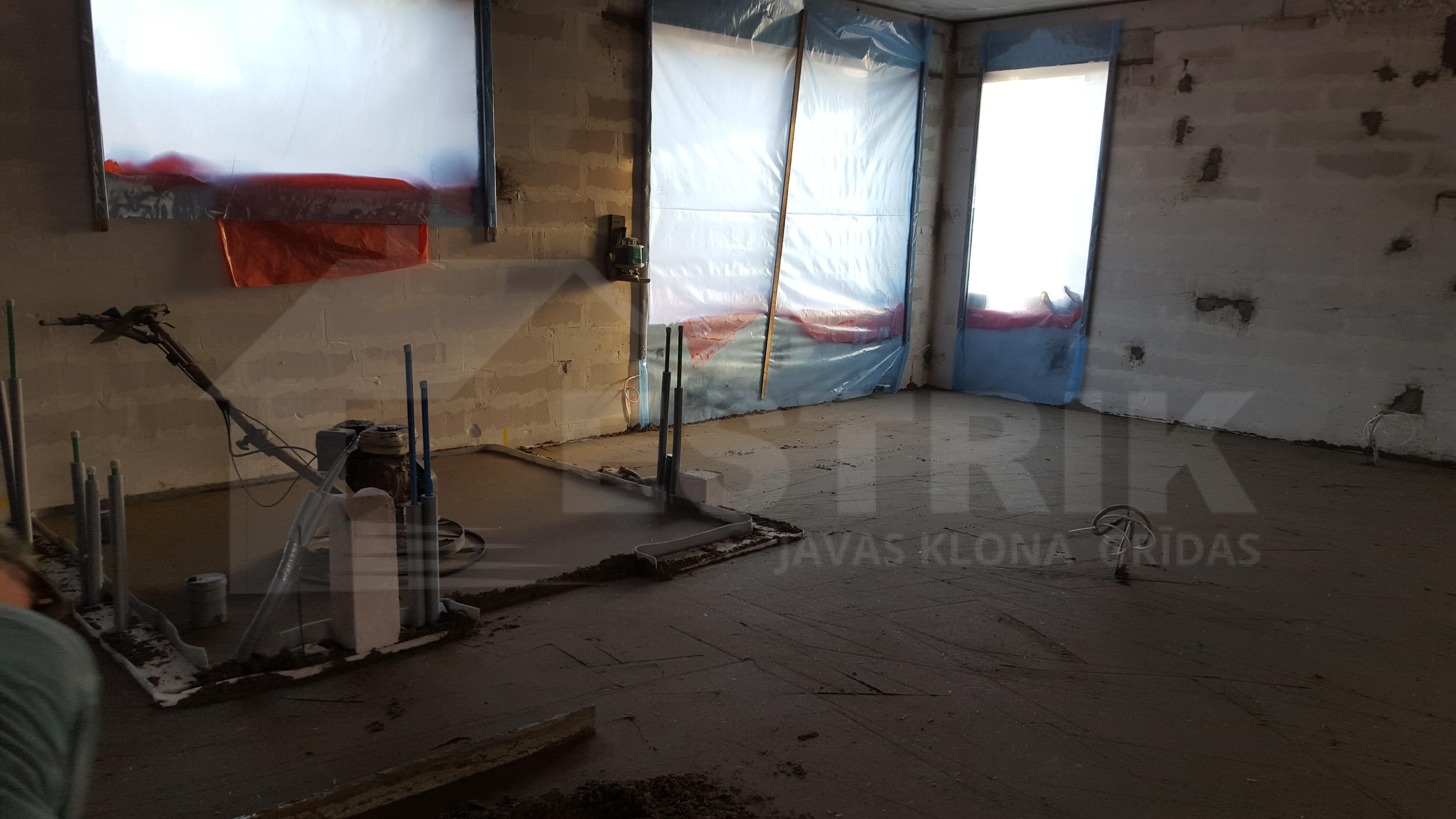 Skaņas izolācijas materiāla (grīdas akmens vate Paroc) ieklāšana, grīdu betonēšana – armēta estrik javas klona grīda (estrich grīda) daudzdzīvokļu mājas grīdām — dzīvokļos, sanitārajos mezglos, koridoros un pagraba telpās.