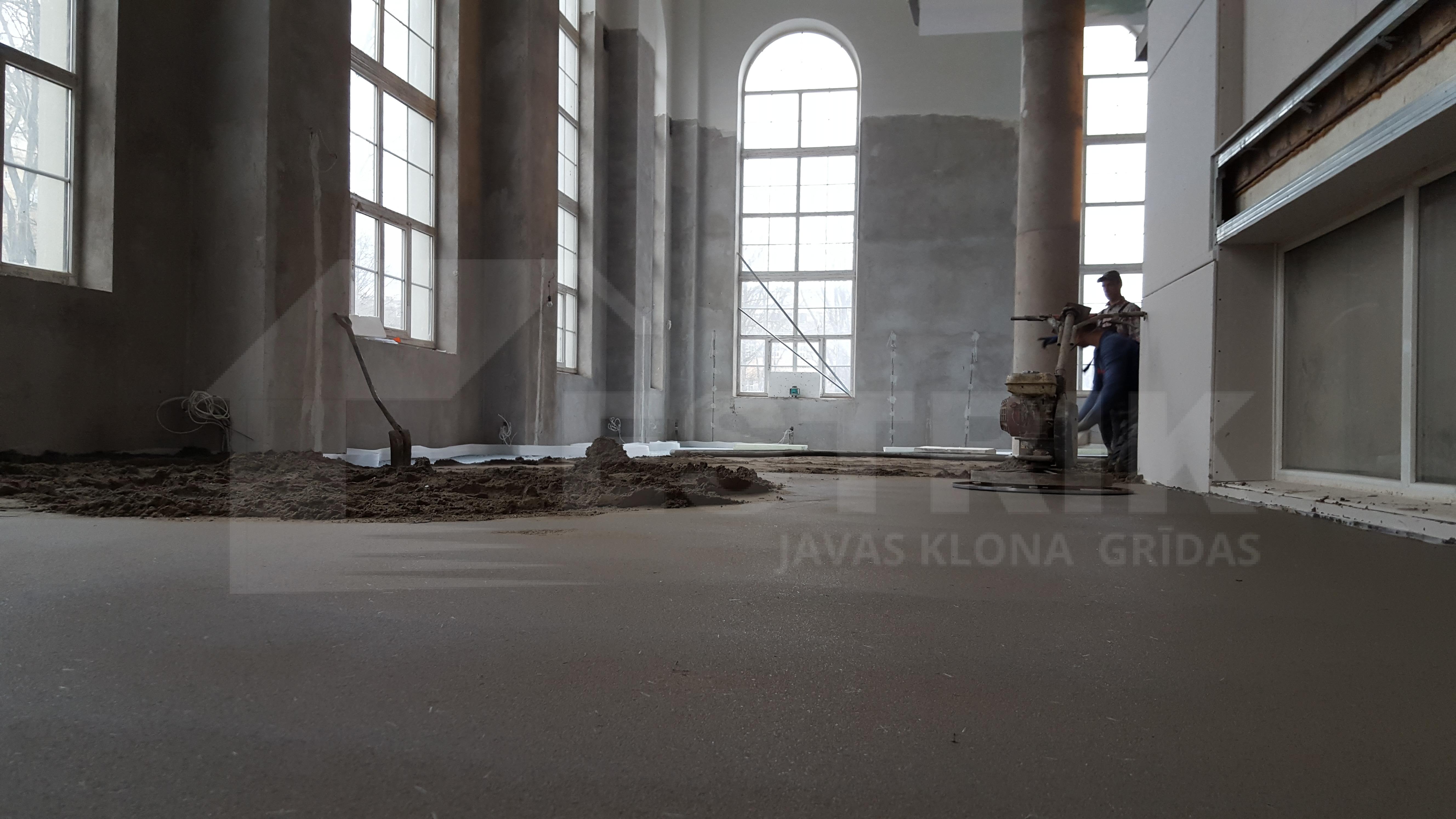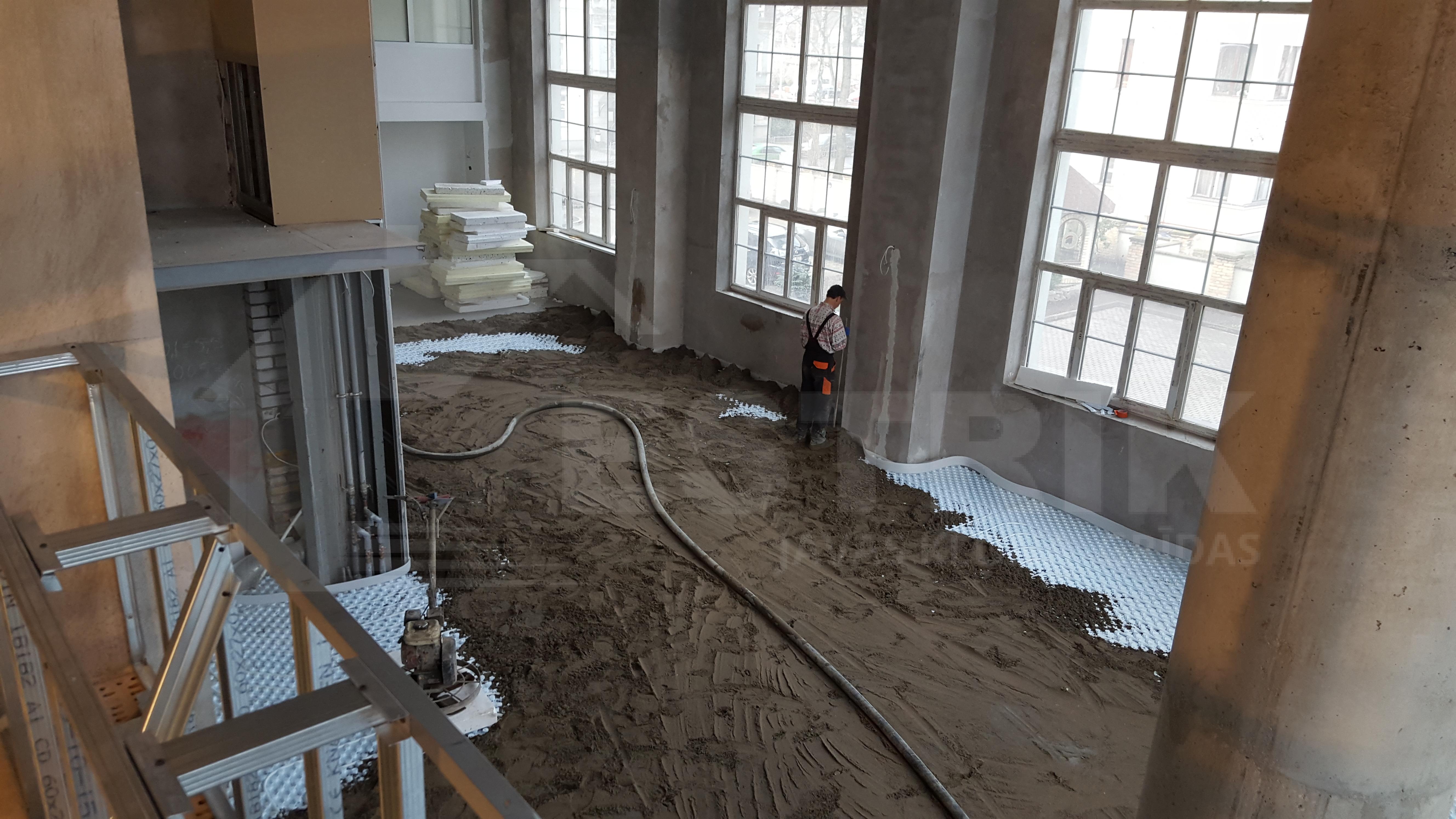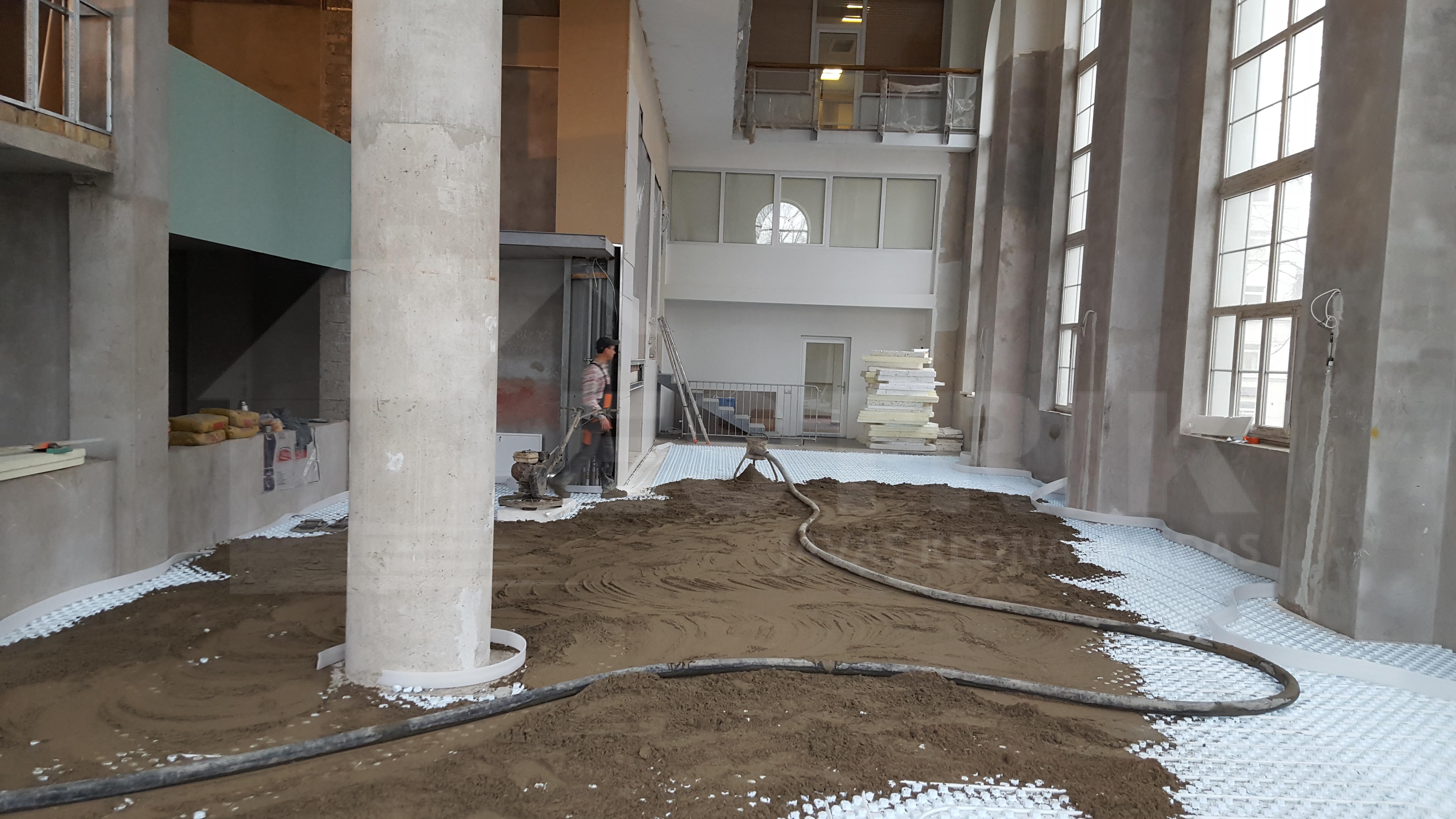 Javas klona (estrich) grīdu izveide uz grīdu apsildes caurulēm (“siltās grīdas”) ofisa telpām.